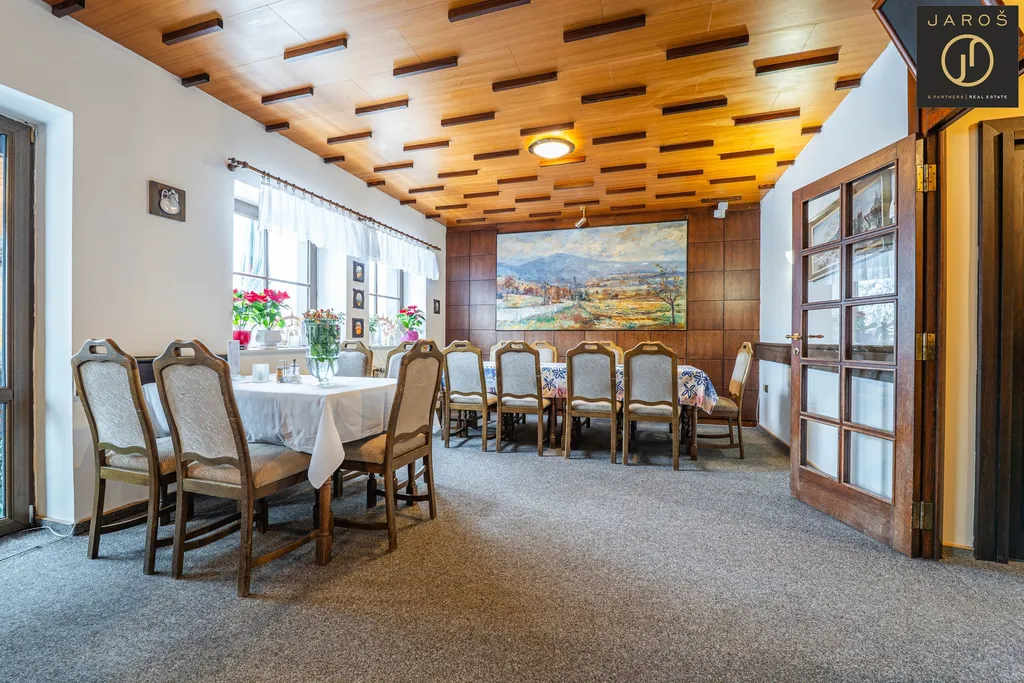Privátní část nabízí komfortní bydlení v dispozici 7kk, ideální pro majitele či provozovatele objektu.
