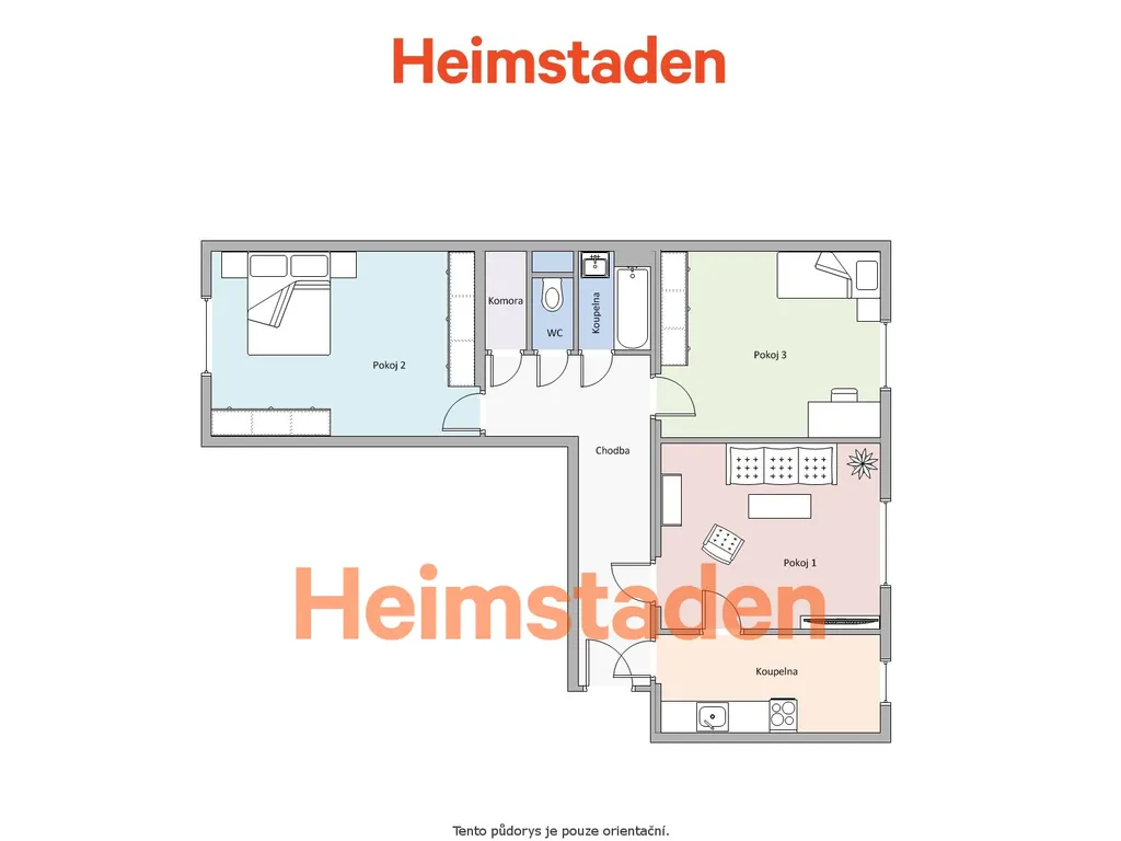 Velkou předností bytu jsou tři samostatné a neprůchozí pokoje, které nabízejí dostatek soukromí a variability využití – ideální řešení jak pro rodinu, tak pro spolubydlení či kombinaci bydlení a práce z domova. Praktickým benefitem je rovněž samostatná komora přímo v bytě, kde bude připravena přípojka pro pračku, což přispívá k lepší organizaci domácnosti.