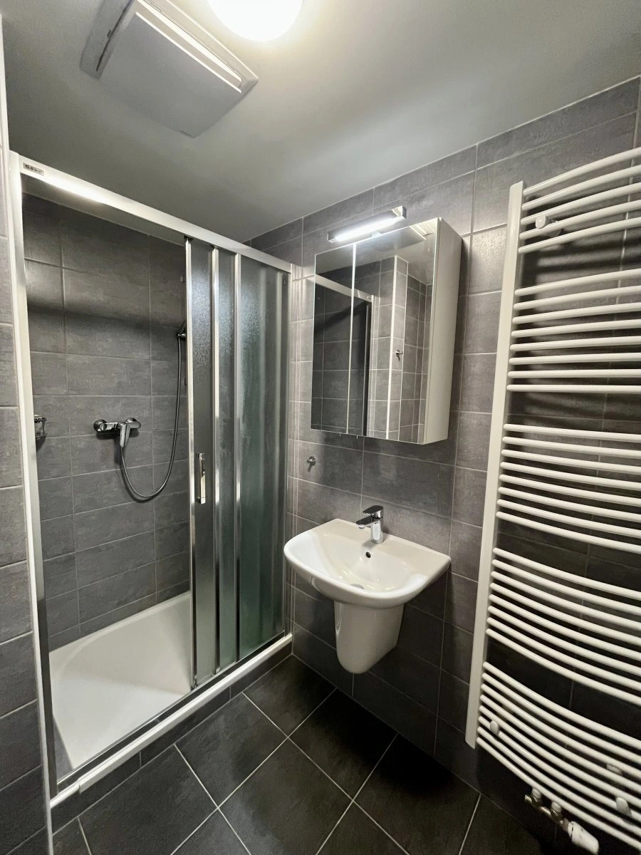 Nabízíme dlouhodobému podnájmu moderní plně vybavený byt 2+kk na ulici Eduarda Hamburgera v Olomouci. Byt o podlahové ploše 45 m2 s šatnou a lodžií se nachází v 7. podlaží. Bytová jednotka se skládá z prostorné vstupní chodby s botníkem, ložnice s vestavěnou skřínou, velkou postelí spolu s kvalitní matrací, koupelny se sprchovým koutem, pračkou a toaletou, kuchyně spojené s jídelním koutem, obývacím pokojem s prostorným gaučem a vstupem na balkón. Byt nabízí dostatek úložného prostoru kvůli šatně.