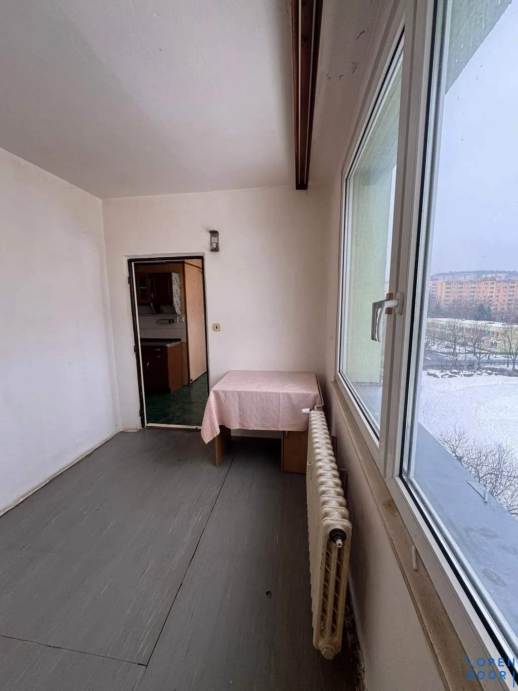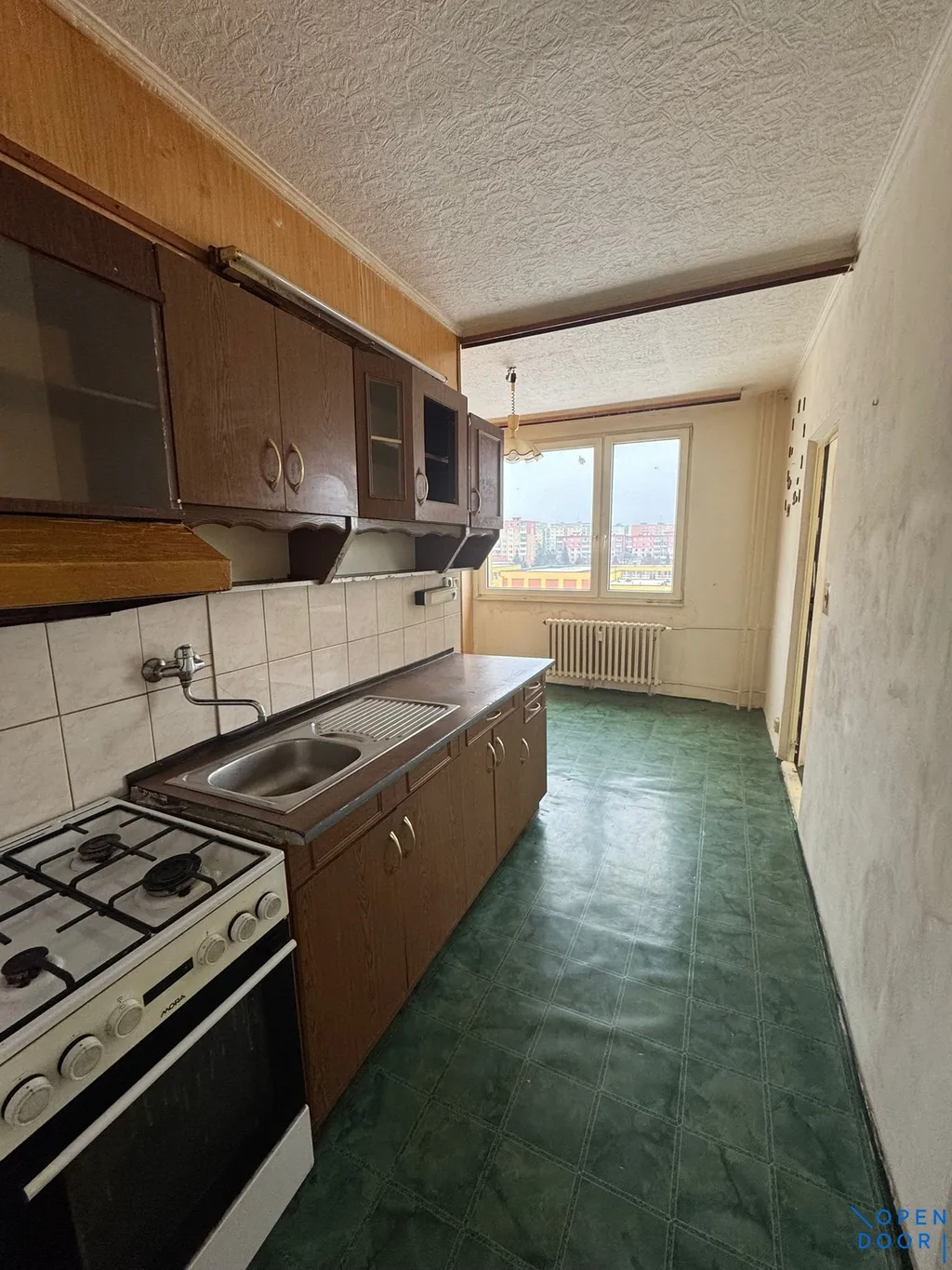 Byt je v původním, ale zachovalém a funkčním stavu, nabízí tři samostatné místnosti, zasklený balkon a kuchyň, vč. kuchyňské linky s plynovým sporákem. V koupelně je vana, umyvadlo a toaleta.