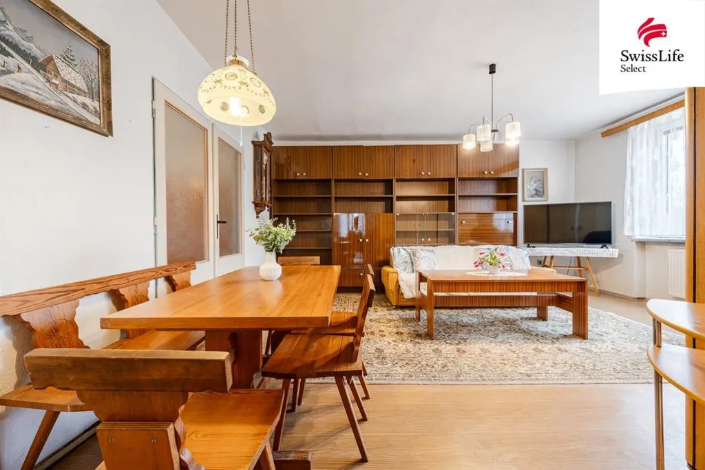 V patře se nachází druhý byt 3+1 s balkonem a nabízí pevný základ, který si nový majitel může doladit podle vlastního vkusu. Je vhodný pro rodinné bydlení, další generaci nebo jako samostatná bytová jednotka k pronájmu.