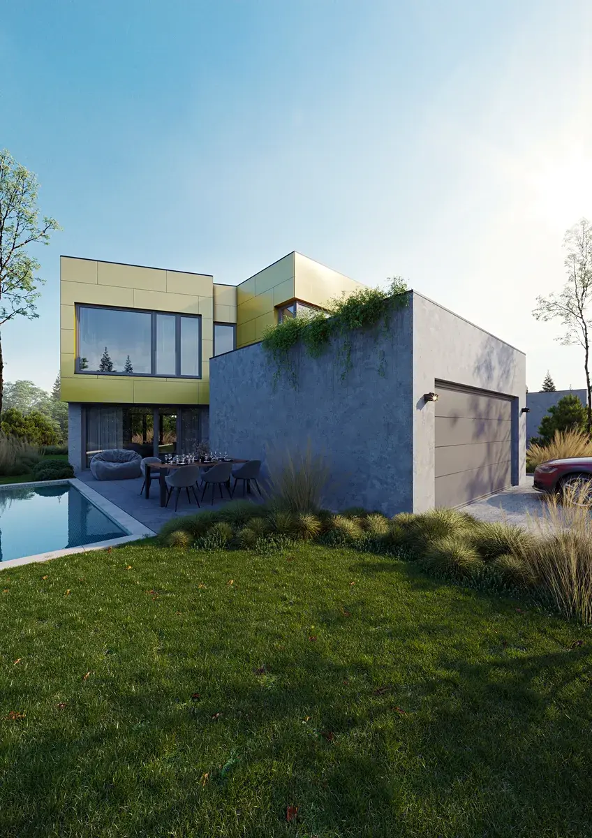 Moderní technologie domu odpovídají nejnáročnějším požadavkům: tepelné čerpadlo (v zimě topí, v létě chladí), rekuperace, inteligentní řízení domu, dřevěná okna s trojskly a retenční nádrž na dešťovou vodu o kapacitě 10 m³ (standardní kapacita je 5 m³). Díky tomu jsou měsíční náklady čtyřčlenné rodiny orientačně jen kolem 6 705 Kč.