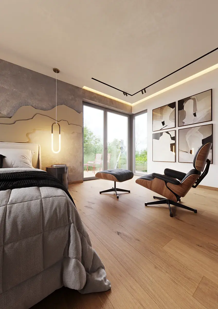 V přízemí vás uvítá prostorný obývací pokoj propojený s kuchyní, odkud se vychází na terasu i do atria. Samostatná pracovna, koupelna, technická místnost a garáž pro dva vozy zajišťují praktičnost domu. V patře pak najdete dvě dětské ložnice, hlavní ložnici se šatnou, druhou pracovnu a dvě koupelny, každý člen rodiny tak má své soukromí.