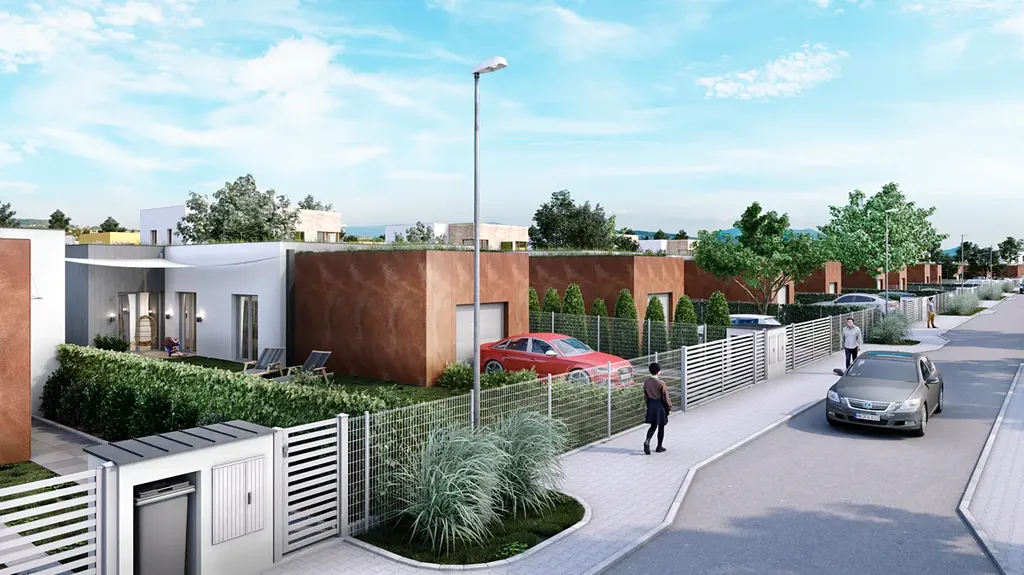 Dům je vybaven moderními technologiemi, které zajišťují nízké provozní náklady a dlouhodobý komfort: tepelné čerpadlo, podlahové vytápění, rekuperace vzduchu a zelená střecha, která podporuje příznivé klima i estetický vzhled. V ceně je navíc zahrnuta fotovoltaická elektrárna a kuchyňská linka. Orientační měsíční náklady čtyřčlenné domácnosti se pohybují okolo 5 700 Kč.