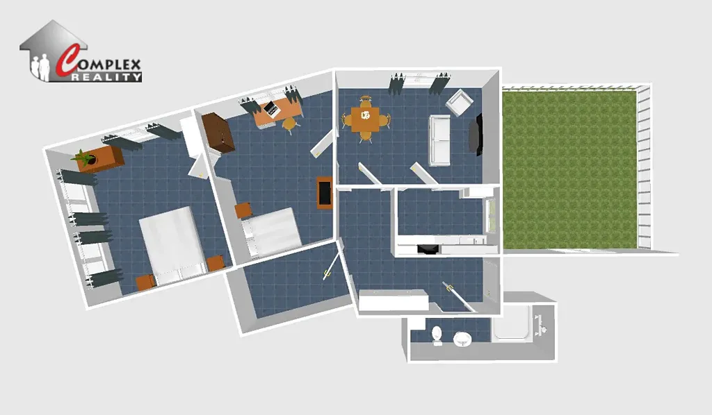 Tento byt nabízí k užívání prostornou předsíň, oddělenou kuchyni, spíž, obývací pokoj, 2 ložnice, toaletu, která je součástí koupelny - sprchový kout a prostornou terasu.