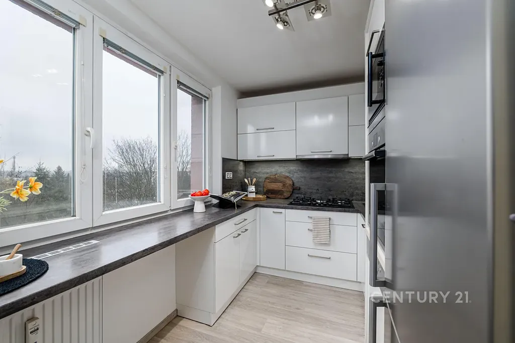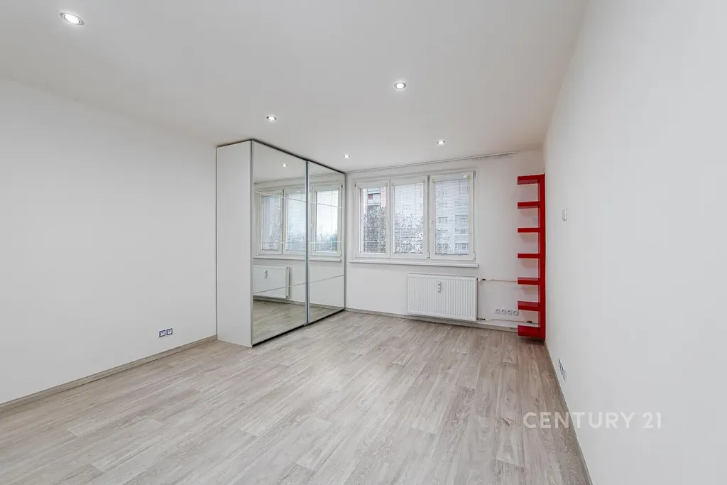 Byt je prostorný, disponuje celkem třemi pokoji, což umožňuje komfortní bydlení pro rodinu nebo jako investice k pronajímání. Místnosti jsou veliké (obývací pokoj ložnice s výstupem na balkón, velký prostorný pokoj a kuchyně, která je vybavena (troubou, plynovým sporákem, myčkou nádobí a kombinovanou lednicí s mrazákem.