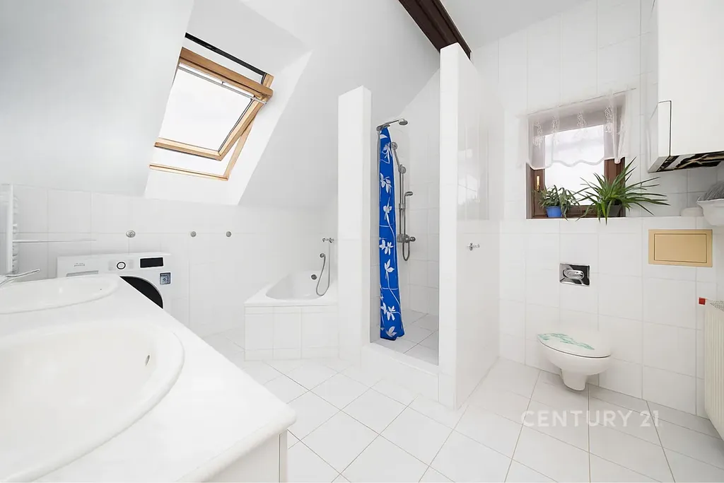 Interiér bytu působí velmi prostorně, čemuž dominuje nadstandardně velký obývací pokoj s krbem a kuchyňským koutem, který tvoří přirozené centrum domova. Dispozici dále doplňuje hlavní ložnice, dětský pokoj a další místnost, která v současnosti slouží jako praktická šatna. Byt je udržován ve velmi dobrém, byť původním stavu, což představuje ideální příležitost pro nového majitele, aby si prostor zrealizoval přesně podle svého vkusu a moderních standardů. Velkým bonusem je navíc 36 m² půdního prostoru náležícího k bytu, který lze stavebně propojit se stávající jednotkou a dále tak rozšířit obytnou plochu.