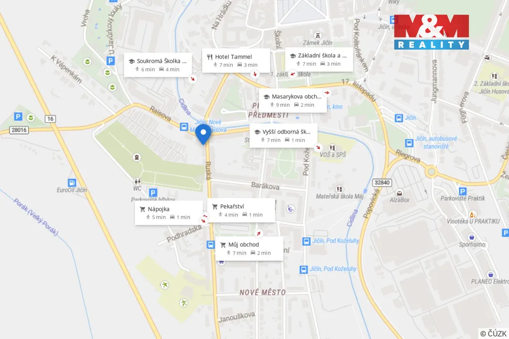Pronájem bytu 2+kk o podlahové ploše 48 m2 ve 3. nadzemním podlaží bytového domu v centru města Jičín, v ulici Ruská. Součástí bytu je parkovací stání v 1. podzemním podlaží a sklep (2 m2). Dispozice: chodba s prostorem na umístění vestavěného nábytku, ložnice, koupelna s WC, obývací pokoj s kuchyňským koutem. V nájmu není zahrnuta částka za úklid společných prostor, kominíka, el. energie společných prostor a poplatek za správu nemovitostí. Vratná kauce je ve výši tří nájmů a jeden nájem za služby realitní kanceláře. Náklady na energie jsou nad rámec nájmu. Byt je k nastěhování od 01.03.2026. Byt je vhodný pro jednu pracující osobu, nebo pár.