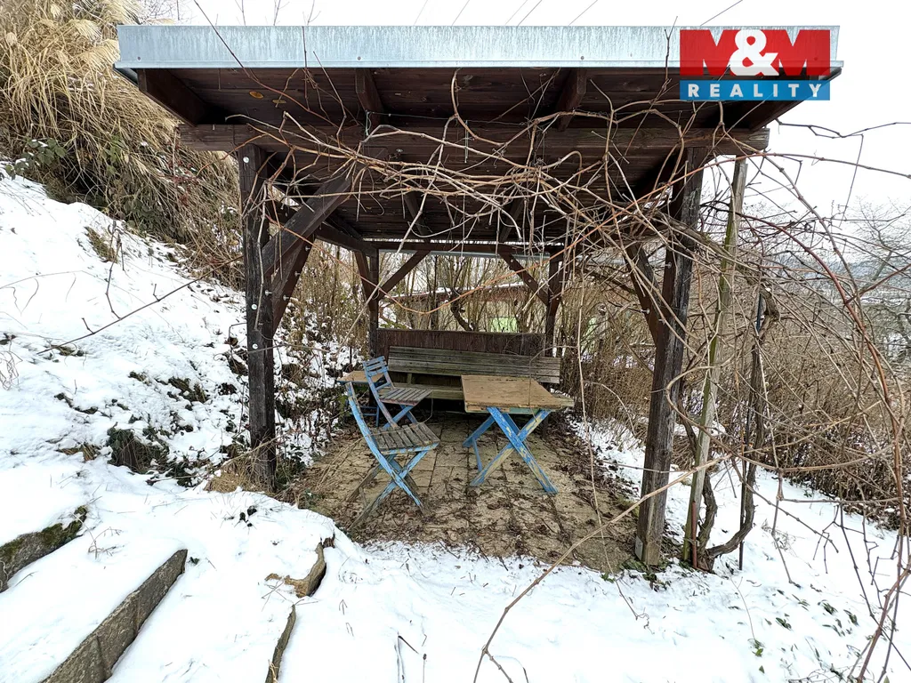 Vedle chaty se nachází altánek, ideální na posezení s rodinou a přáteli, grilování a letní pohodu.