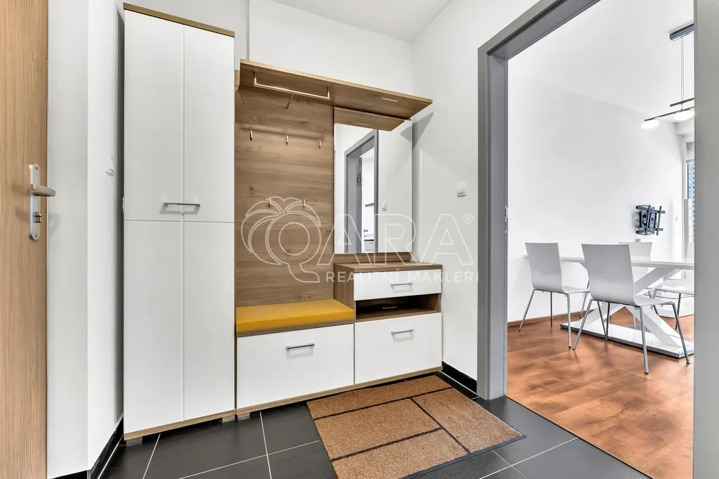 Součástí vybavení je kuchyňská linka se všemi vestavěnými spotřebiči (varná deska, digestoř, elektrická trouba, myčka, lednice s mrazákem), jídelní stůl se židlemi, sedací souprava a televizní stolek. V ložnicích jsou postele a úložné prostory ve formě vestavěných skříní. K dispozici je také praktická komora s pračkou. Všechna okna jsou vybavena předokenními žaluziemi.