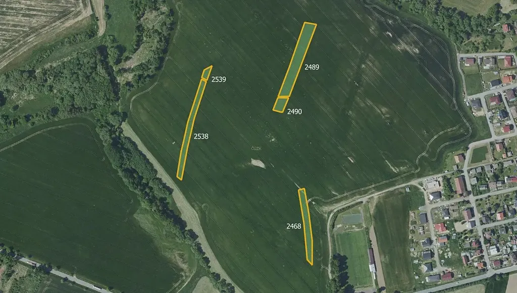 Do prodeje vstupují parcely č. 1105, 1106, 1249, 1251, 1738, 1769, 1771, 1772, 2202/44, 2468, 2489, 2490, 2538 a 2539.