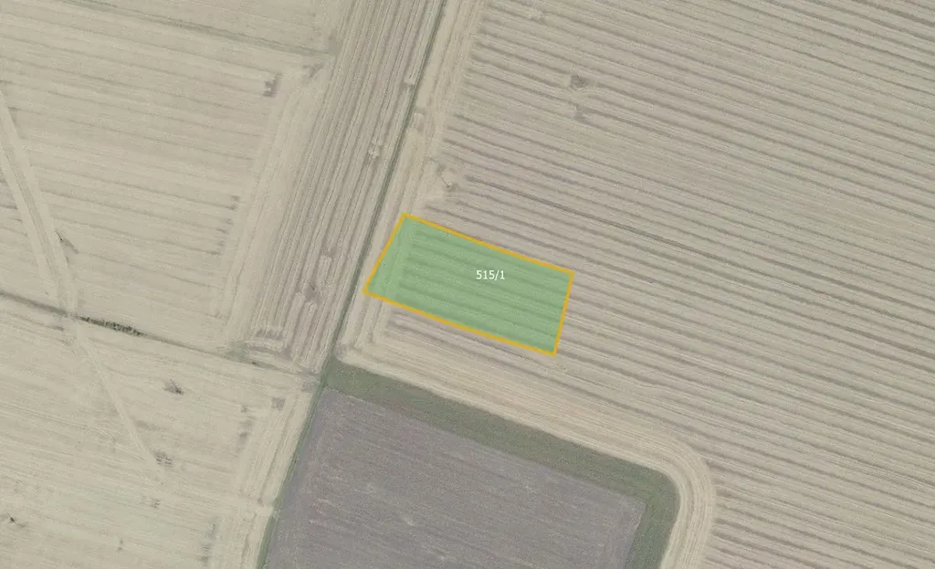 Parcela č. 515/1 o celkové výměře 7 672 m² je zapsána na LV č. 164. Prodávající nabízí vlastnictví výměry 7 161 m². Pozemek je veden jako orná půda. Přístupný je po ostatní komunikaci.