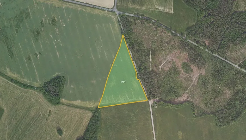 Jedná se o parcelu č. 494 vedenou jako orná půda. Celková výměra pozemku činí 32 483 m². Nachází se podél cesty a je tak pohodlně přístupný.