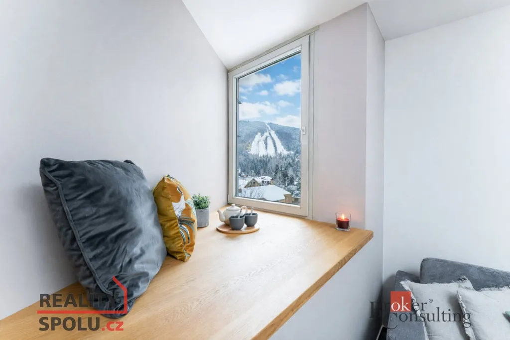 Dispozice nabízí dvě samostatné ložnice, koupelnu, oddělené WC a dostatek úložných prostor. Byt působí velmi příjemně, útulně a zároveň vzdušně. Je připravený k okamžitému užívání, ať už hledáte vlastní horské zázemí, nebo nemovitost s potenciálem krátkodobého pronájmu.
