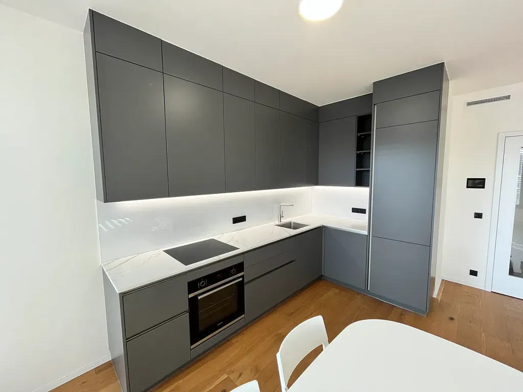- moderní kuchyňská linka na míru v tmavém matném provedení