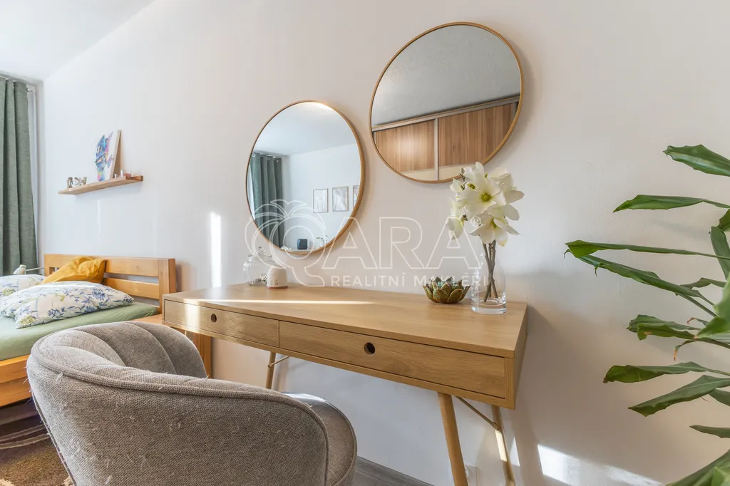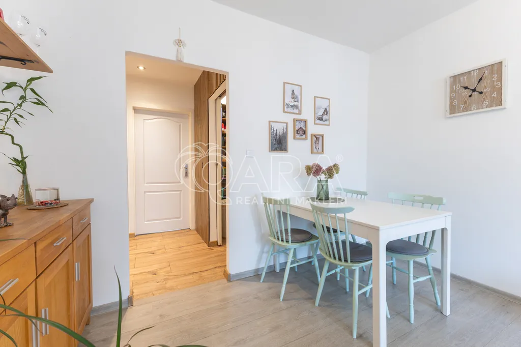 Byt prošel rekonstrukcí – nové rozvody elektroinstalace, rozvody vody v plastu, nové plovoucí podlahy, omítky a kompletní výmalba.