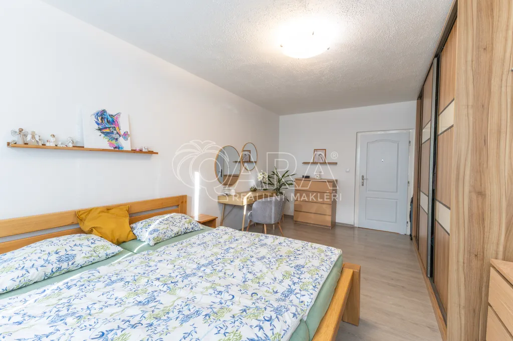 Byt nabízí dostatek úložného prostoru – v ložnici se nachází šatní skříň, v prostorné chodbě je komora s velkým úložným prostorem.