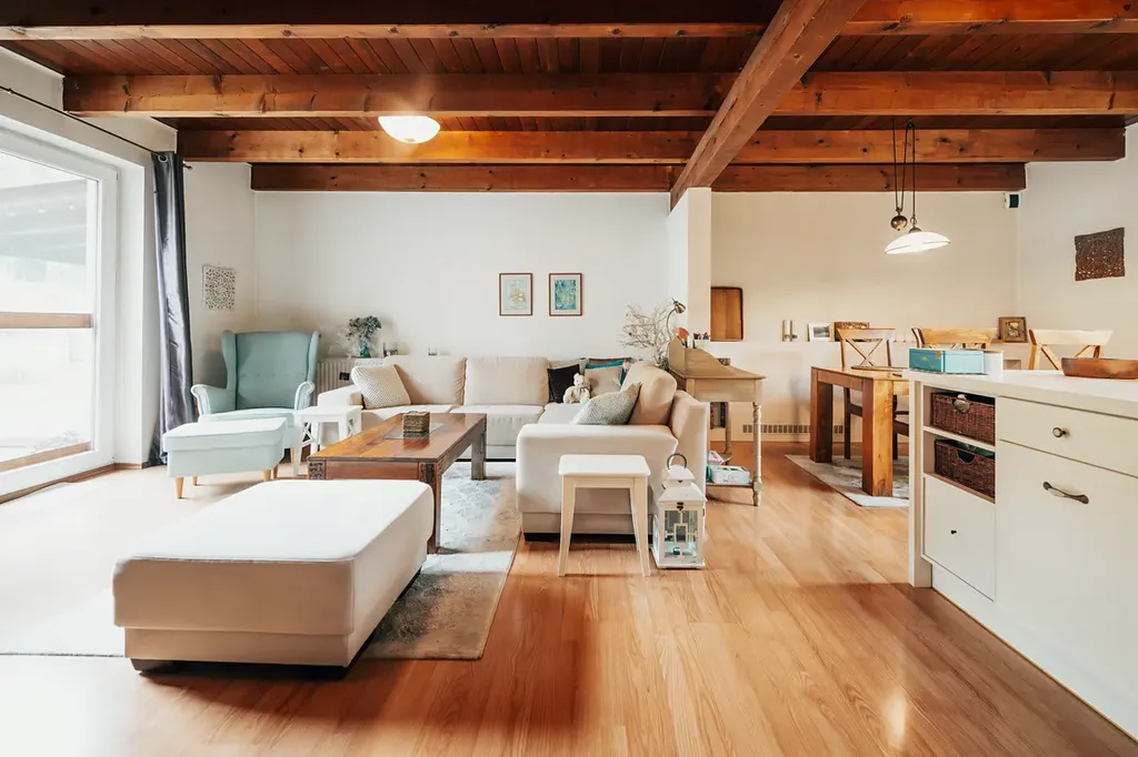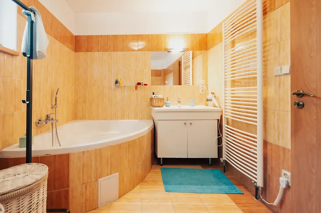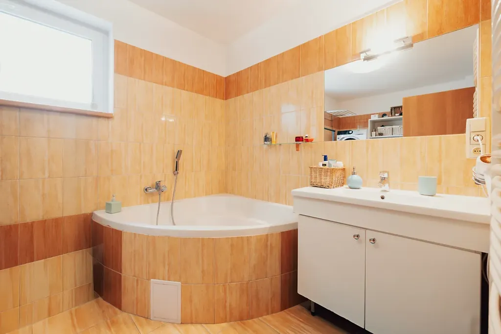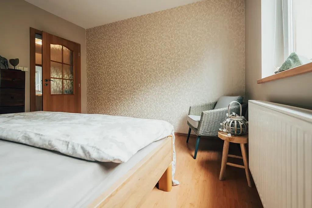 • plovoucí laminátové podlahy v kombinaci s keramickou dlažbou, v ložnici koberec