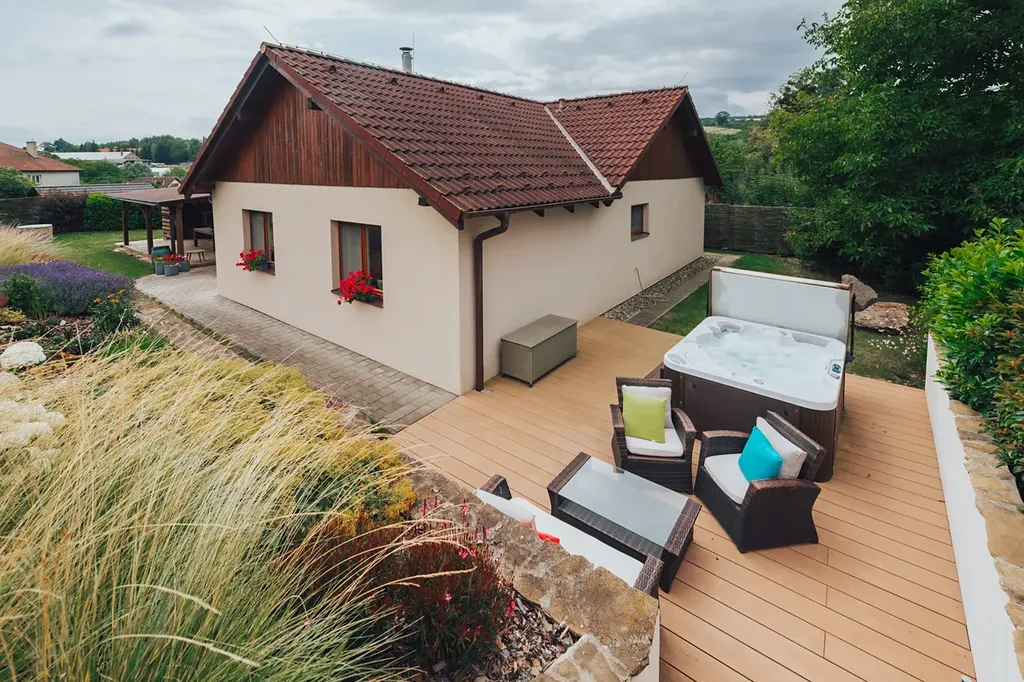 • druhá terasa s celoročně využitelnou masážní vířivkou a relaxační zónou