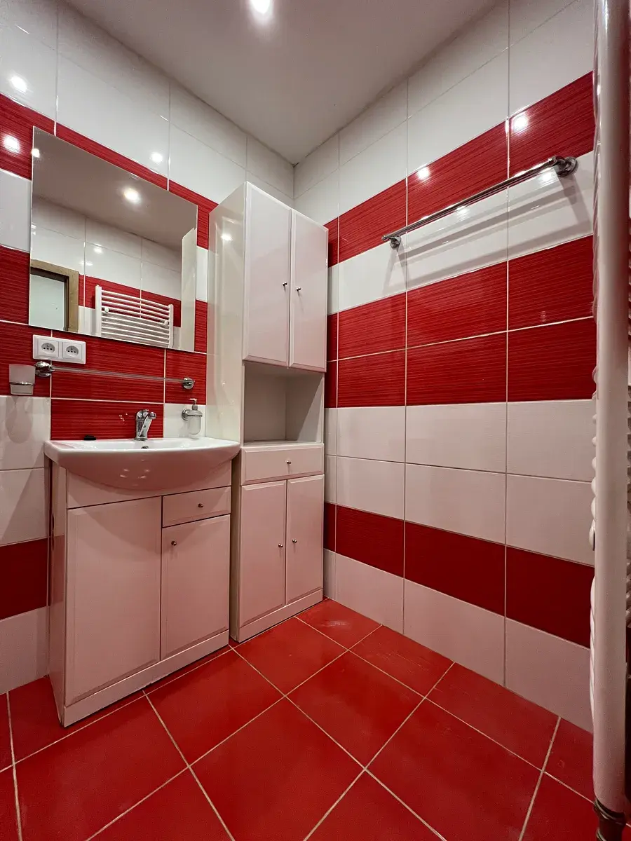 - Modernizovaná koupelna s velkým sprchovým koutem a vytápěnou podlahou