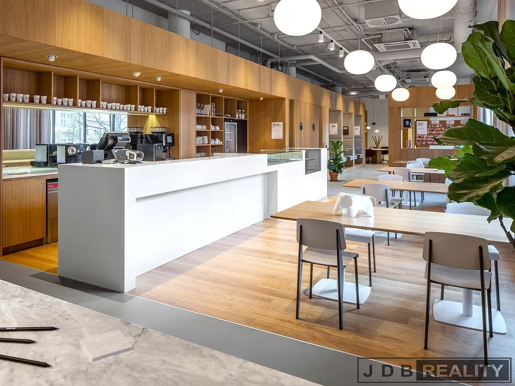 - Společné prostory, business lounge, relaxační zóny a plně vybavené kuchyňky