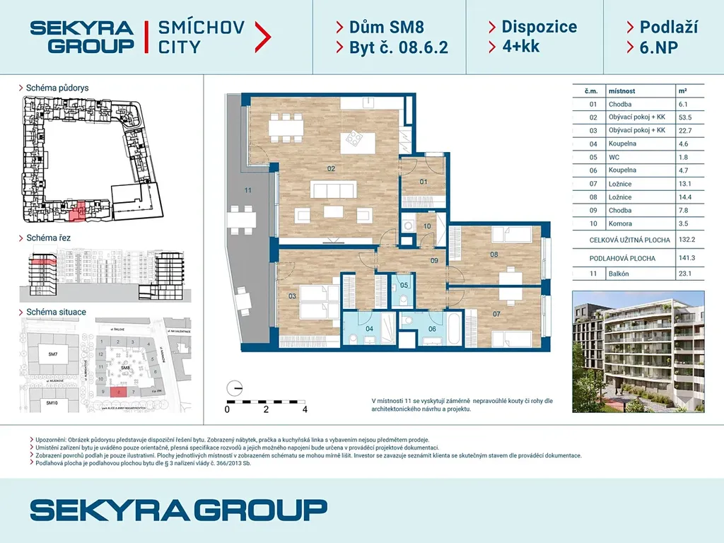 Dovolujeme si Vám nabídnout k prodeji byt 4+kk o výměře 141,3 m² s balkónem 23,1 m² v rezidenčním projektu Smíchov City, blok SM8.