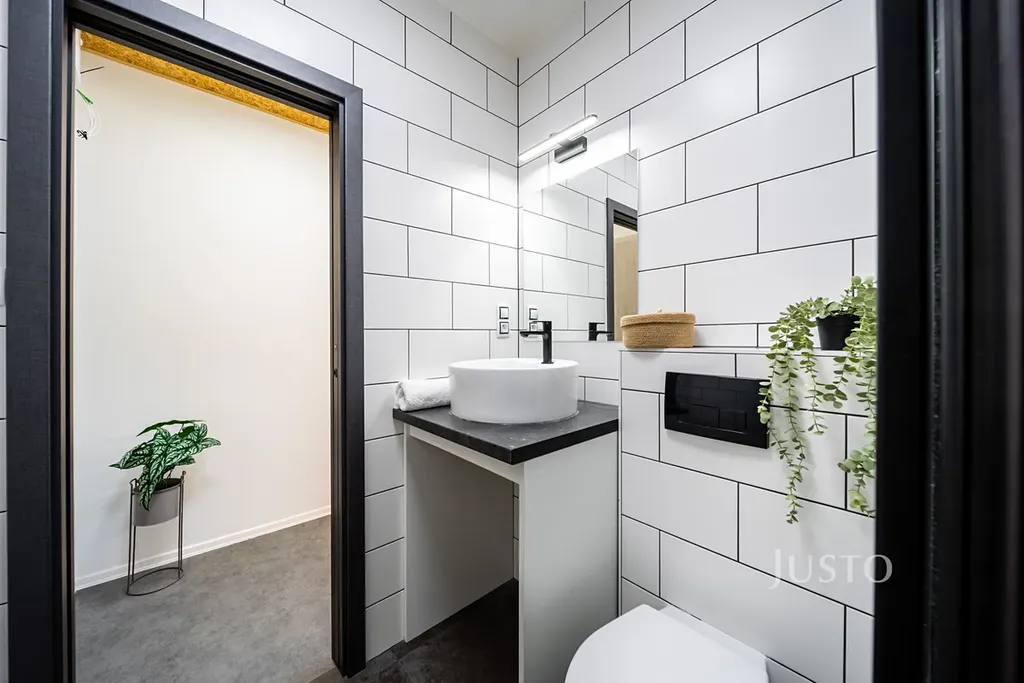 Byt prošel kompletní rekonstrukcí včetně výměny původního bytového jádra za zděnou konstrukci z Ytongu. Nová koupelna je moderně řešena – sprchový kout, toaleta, umyvadlo i příprava na pračku pod umyvadlem, nebo možnost umístění výhřevného žebříku. Na vše bylo myšleno.
