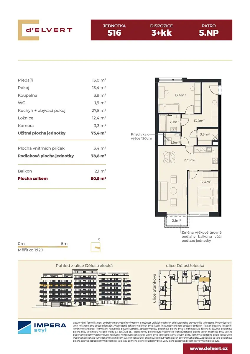V právě připravovaném projektu d´Elvert vám nabízíme k prodeji bytovou jednotku o dispozici 3+kk.
