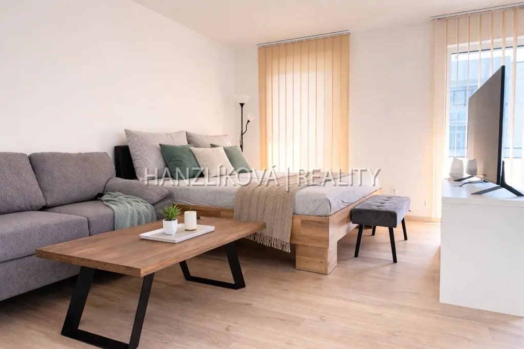 Exkluzivně nabízíme k pronájmu zcela nový, kompletně zařízený byt o dispozici 1+kk, který svou velikostí a uspořádáním působí spíše jako menší byt 2+kk. Byt se nachází ve 3. patře moderní novostavby v ulici Oskara Nedbala v Českých Budějovicích a nabízí celkovou plochu 50,7 m² + terasu 12,6 m² orientovanou do klidného vnitrobloku na východ. Dům je vybaven výtahem.
