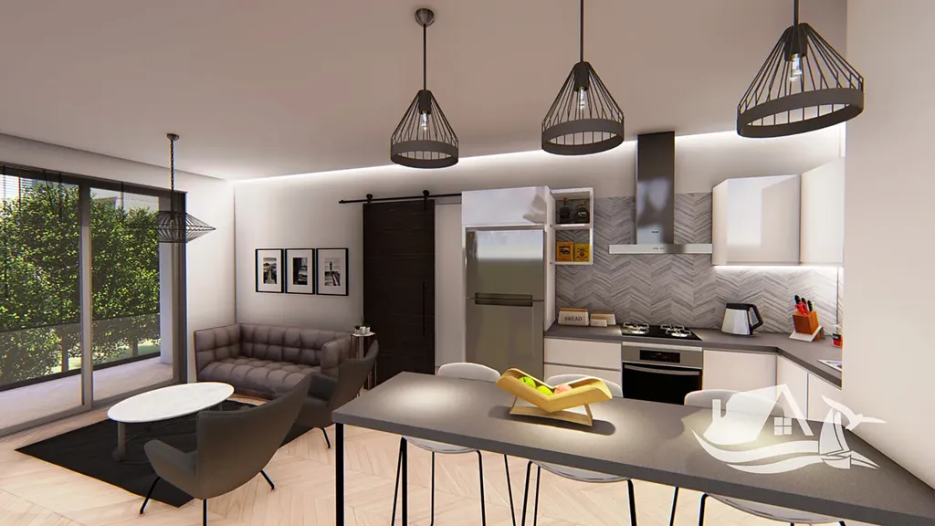 Apartmán je součástí menšího rezidenčního projektu s pouhými 38 jednotkami. To zajišťuje klidnější prostředí, více soukromí a příjemnou sousedskou atmosféru, která u větších komplexů často chybí. Byty jsou předávány ve stavu na tapa, tedy připravené k individuálnímu dokončení. Budoucí majitel má volnost zvolit si styl, materiály i rozpočet podle vlastního záměru, ať už hledá domov, místo pro návraty k moři nebo investici.
