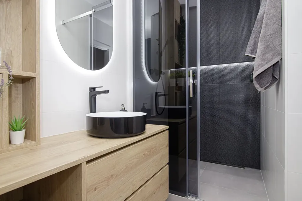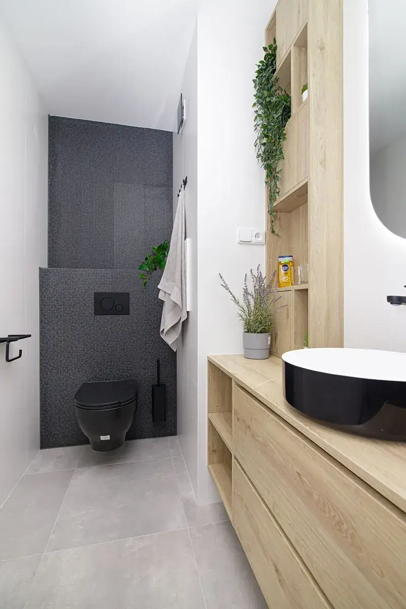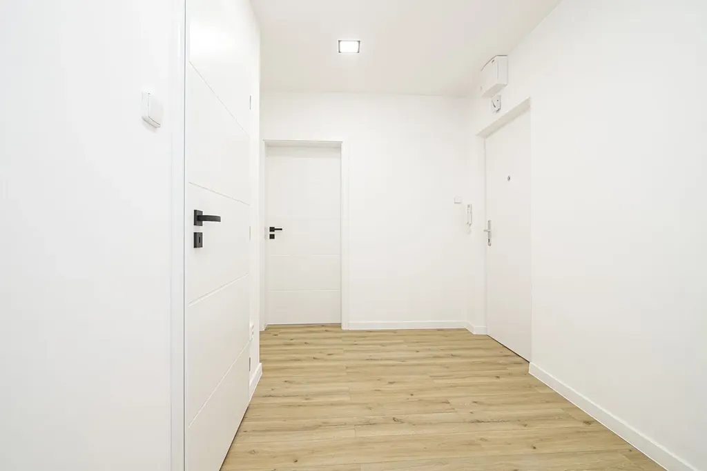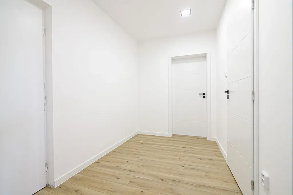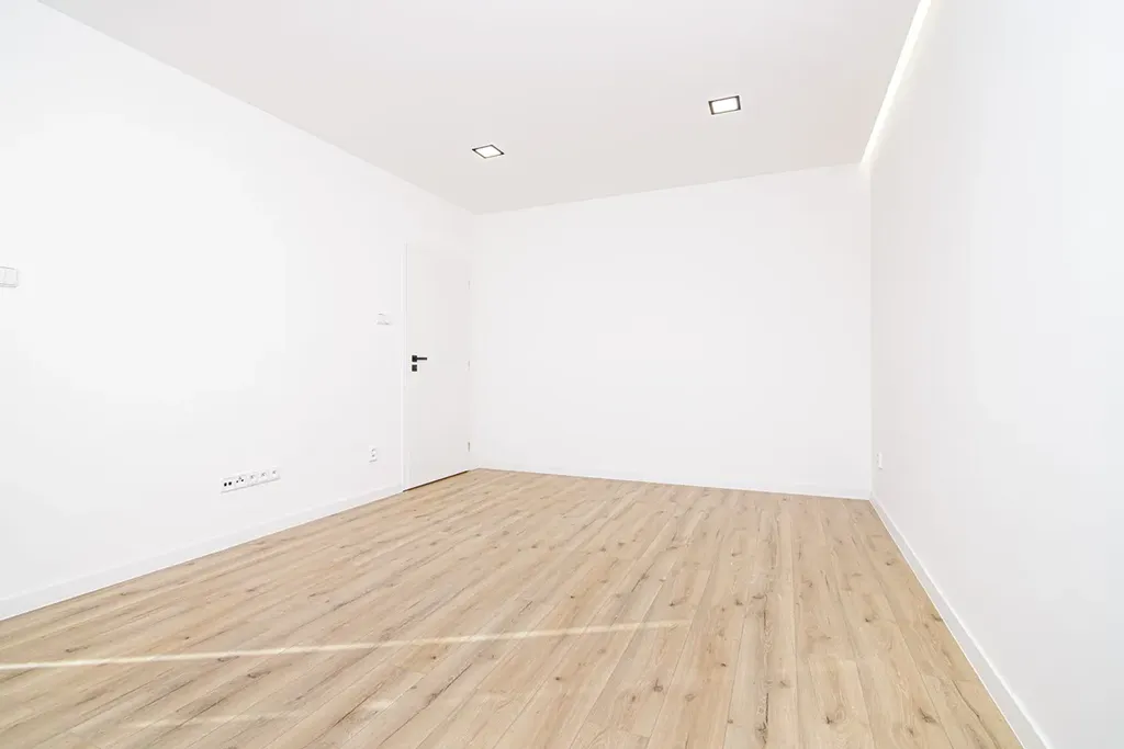 V bytě je vše nové - vylité anhydritové podlahy s vinylovou krytinou, sádrové omítky, elektroinstalace, LED osvětlení, podhledy, luxusní kuchyně vybavená vestavěnými spotřebiči a rozšířená koupelna spojená s WC.