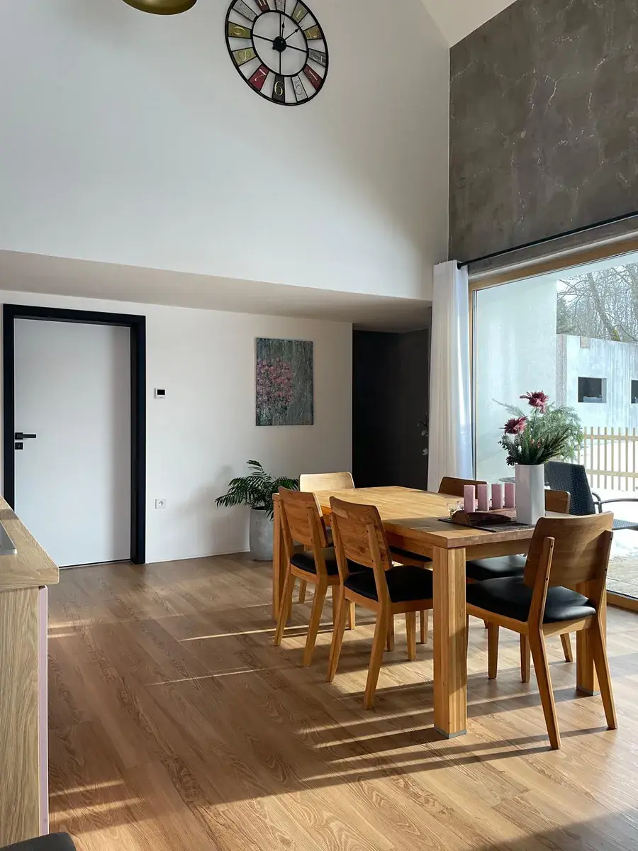 Prodej novostavby rodinného domu v srdci České Kanady. Prodám elegantní novostavbu rodinného domu o dispozici 4+kk (106 m²) s možností rozšíření na 5+kk až cca 130 m², doplněnou o rozestavěnou garáž 70 m², sklad 15 m² a zahradu. Nemovitost se nachází na konci malebné vesnice, v klidném prostředí přírodního parku Česká Kanada, v nadmořské výšce cca 640 m. Jedinečné místo s čistou přírodou, klidem a soukromím, přesto s dobrou dostupností: Jindřichův Hradec cca 15 km, Nová Bystřice / hranice s Rakouskem cca 10 km. V bezprostřední blízkosti Golfresort Monachus – hřiště Nová Bystřice a Mnich. Dům je světlý, vzdušný a velmi prostorný, a to nejen díky promyšlené dispozici, ale také díky velkoformátovým oknům a vysokému stropu do štítu v hlavním obytném prostoru. Příjemnou atmosféru podtrhují kvalitní litinová kamna Jøtul. Obývací pokoj s kuchyní a jídelnou orientovaný do zahrad. Přímý vstup na terasu přes portálové okno. Kuchyňská linka na míru od renomované firmy, včetně všech spotřebičů