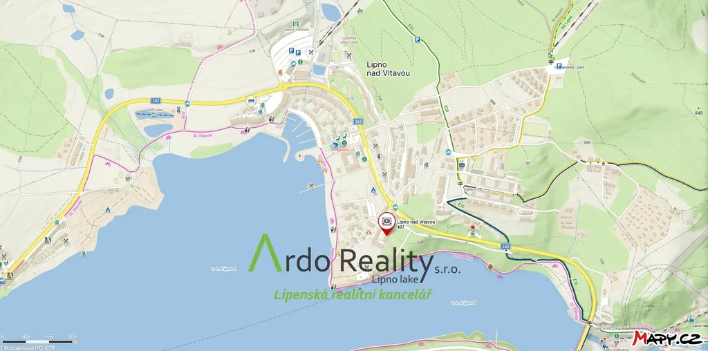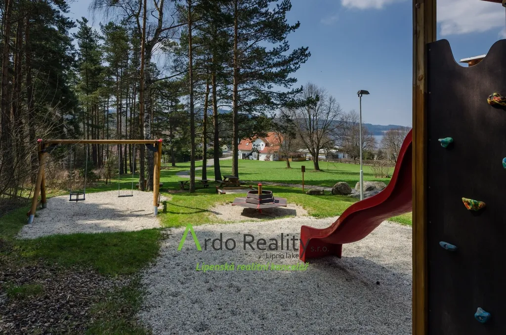 Byt o velikosti 67 m² v areálu DOKY Holiday resort v Lipně nad Vltavou poblíž nádherné pláže a cyklistické stezky, nedaleko aquaparku či skiareálu Lipno. V areálu Doky je k dispozici venkovní vyhřívaný bazén, brouzdaliště pro děti, dětské hřiště a relaxační centrum se saunou. Vlastník apartmánu je spoluvlastníkem těchto prostorů. Areál je plný okrasné zeleně a parkových ploch. Apartmán je v osobním vlastnictví, vhodný pro 4 - 5 osob. Je zde elektrické vytápění a voda se ohřívá bojlerem. Obývací pokoj je plný světla z prostorné terasy o velikosti 7 m². Součástí obývajícího pokoje je kuchyňský kout se sklokeramickou deskou, barovým pultem, elektrickou troubou, mikrovlnnou troubou, myčkou na nádobí a lednicí s mrazákem. Další místností je ložnice s manželským dvojlůžkem a vestavěnou skříní. V prostorné koupelně najdete vanu s umyvadlem a pračku. Byt má dále oddělené WC s malým umyvadlem. Poslední místností je sklep pro odložení lyží, jízdních kol a jiného materiálu. Byt je kompletně vybaven a připraven na pronajímání. K nemovitosti patří vlastní parkovací stání. K nejbližší restauraci 116 metrů, na pláž 350 metrů, skiareál Lipno je vzdálen 1 km. Stezka korunami stromů je pěšky vzdálena jen 2,7 km. Lázeňský městys Frymburk je vzdálen 8,6 km. Komplex apartmánů DOKY Holiday resort se nachází pod hlavní komunikací číslo 163 a tedy pouze asi 300 metrů pohodlné chůze od veřejné udržované pláže, na rozdíl od stovek dalších apartmánů, které jsou někdy i několik kilometrů od jezera.