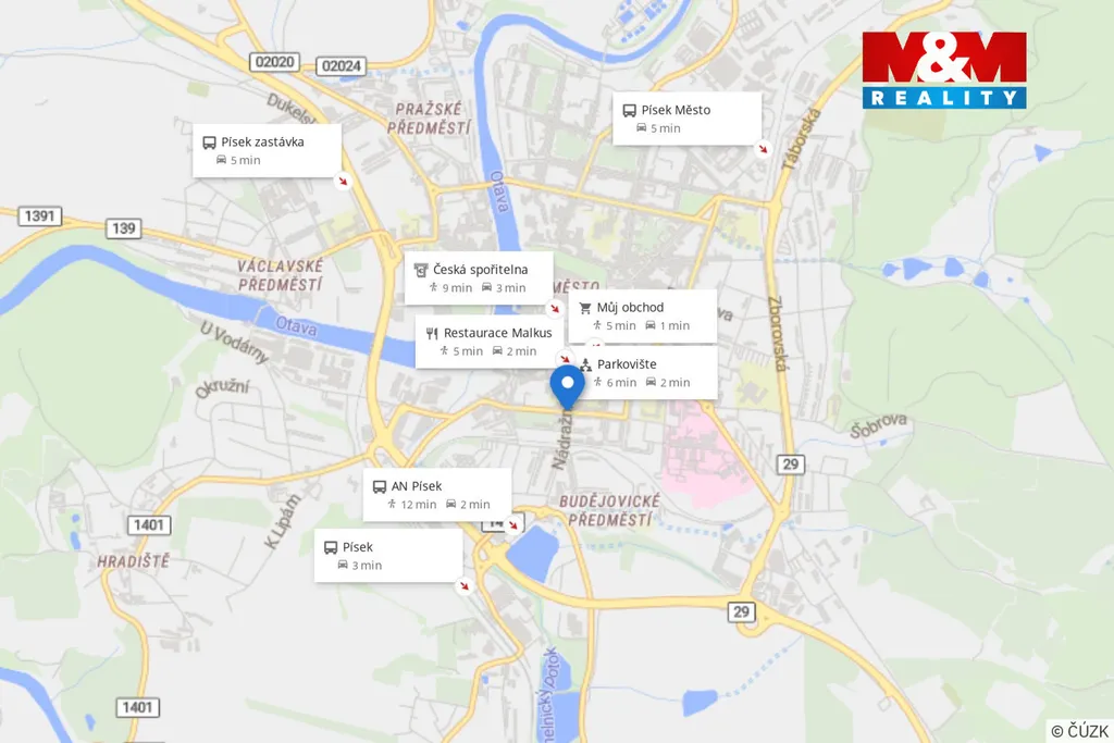 Nově nabízíme k pronájmu kancelář o ploše 15 m² umístěnou ve 3. patře budovy na ulici Nádražní v Písku. Prostor je vhodný pro menší firmu, administrativní činnost nebo individuální podnikání. Zázemí budovy zahrnuje společné toalety na patře a možnost krátkodobého parkování přímo u objektu, což je praktické například pro klienty. Lokalita nabízí výbornou dostupnost nejen díky blízkosti vlakového i autobusového nádraží, v okolí se nachází i veškeré potřebné služby. Prostor je volný ihned a připraven k využití.
