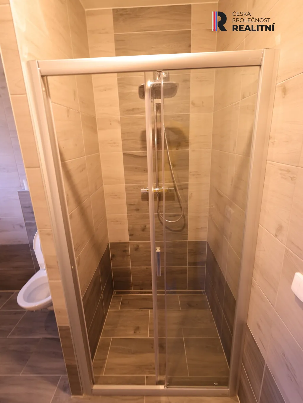 Technická místnost – hned za vchodovými dveřmi, vybavena elektrickým kotlem, bojlerem, WC a umyvadlem.