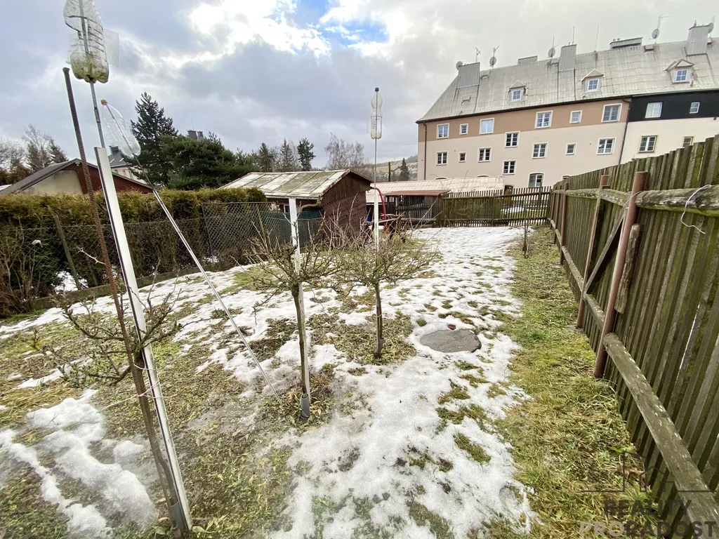 Velkou výhodou je zahrada za domem, kterou je možné si pronajmout. Jedná se o 267 m2 plochy. Na zahradě je dřevěná bouda na nářadí, zahradu je možné využívat k pěstování zeleniny nebo k rekreaci.