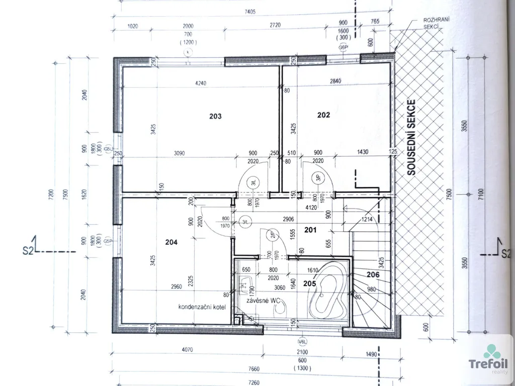 V patře se nacházejí tři pokoje a koupelna s vanou a toaletou. Všechny místnosti poskytují dostatek prostoru a pohodlí pro každého člena rodiny.