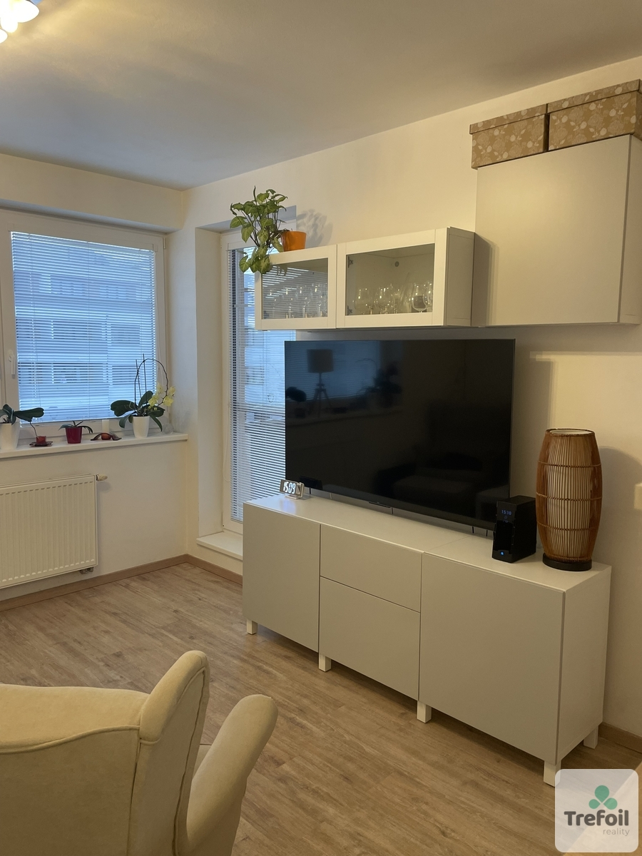 světlý obývací pokoj plně vybavený, s přímým vstupem na lodžii