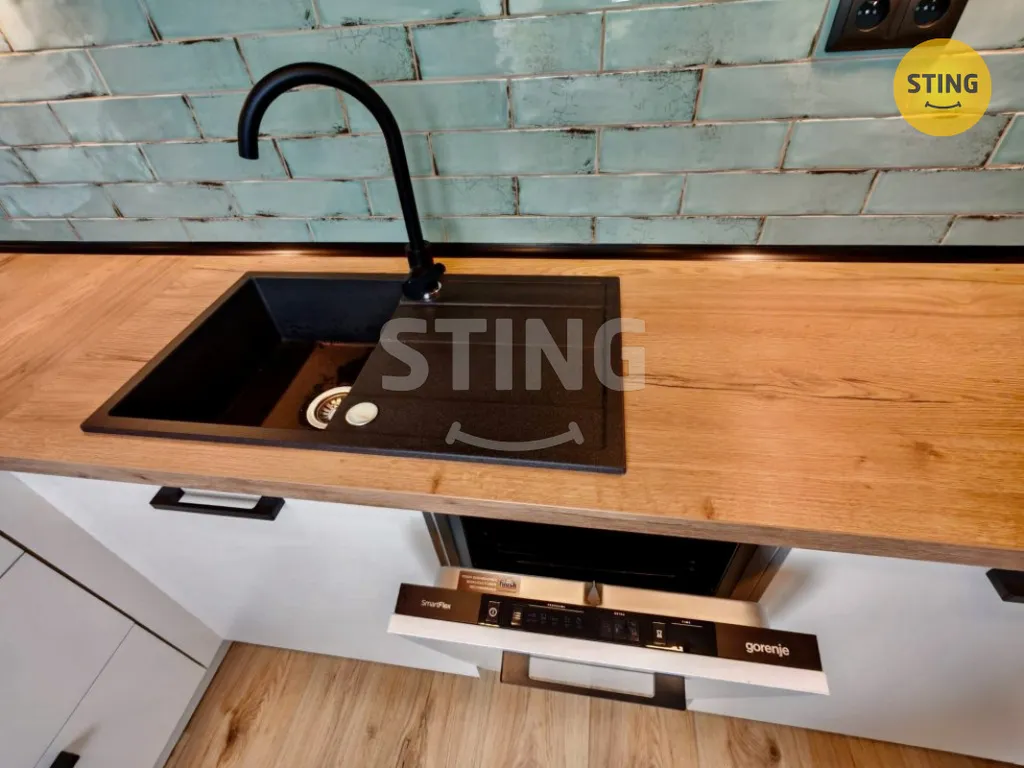 Nová elektroinstalace poskytne budoucím majitelům velký počet zásuvek ve všech místnostech, rozvody pro internet, místo pro router. Byla navýšena kapacita hl. jističe na 25a. Kvalitní kuchyňská linka německé výroby je vybavená značkovými elektrospotřebiči (el. trouba, mikrovl. trouba, varná deska, myčka, digestoř). V roletě se nachází místo a zásuvky pro kávovar a jiné kuchyňské spotřebiče, skleněné police. Mimo to jsou zásuvky a osvětlení i nad pracovní plochou. Celkově kuchyně nabízí úložné prostory, komfort a pohodlný nestísněný pohyb. Příslušenstvím bytu je i sklep.