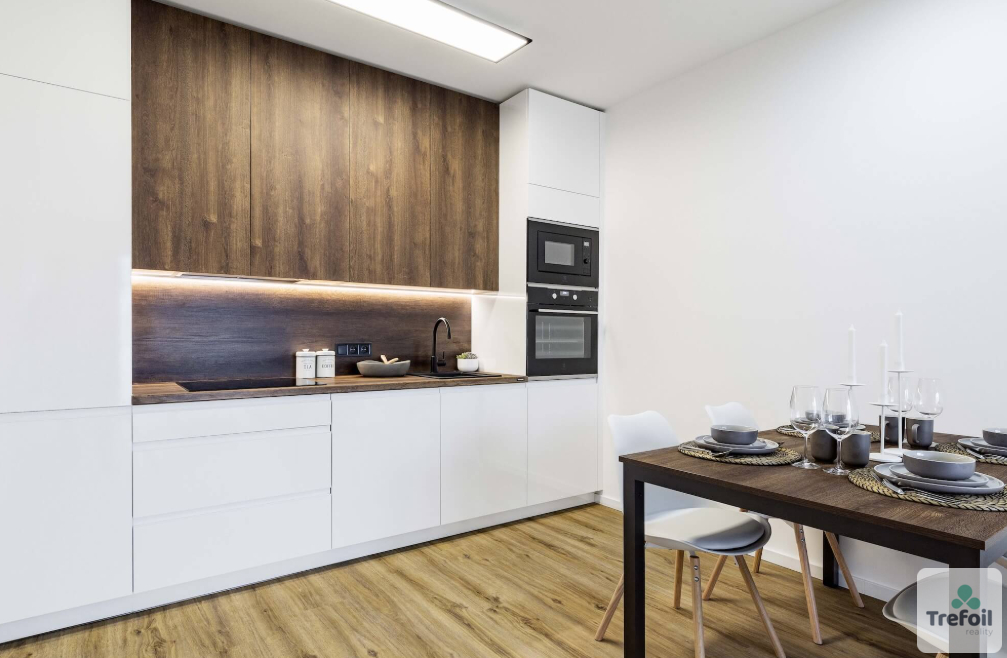 Byt nabízí otevřený obývací prostor s kuchyňským koutem a příjemnou atmosféru pro každodenní život i odpočinek.