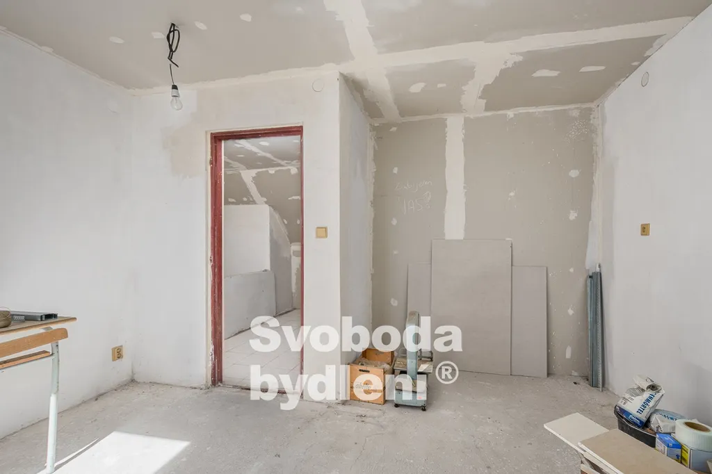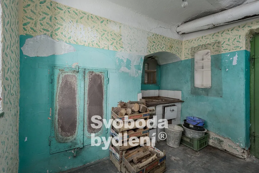 Vlevo od vstupu do vejminku se nachází dveře do bývalého chléva ( cca 15 m2). Poslední dveře vedou do bývalé dílny (cca 90 m2, výška stropu cca 2,5m), ze které je vstup do zadní místnosti (cca 13 m2).