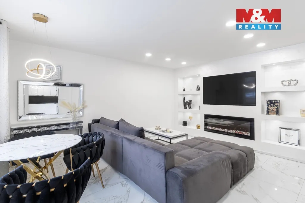 Exkluzivně nabízíme k prodeji byt 2+1 v osobním vlastnictví, po nadstandardní rekonstrukci, o podlahové ploše 62 m2. Nachází se ve zvýšeném přízemí zrevitalizovaného nízkopodlažního domu v klidné části ulice Břustkovy, v Ostravě Výškovicích. Byt disponuje prostorným obývacím pokojem s jídelním stolem a vstupem do kuchyně, velkou ložnicí, umožňující umístit kromě vestavěné skříně i pracovní kout, předsíní s další vestavěnou skříní a také koupelnou s vanou, s dvojicí umyvadel a vestavným WC. Rekonstrukce bytu v moderním designu zahrnovala novou elektroinstalaci, stropní pohledy, vydláždění podlah italskou luxusní dlažbou, dvě vestavěné skříně a taktéž kuchyňskou linku v bílém lesku a vestavěnými spotřebiči. Bonusem je skutečnost, že vybavení bytu včetně kvalitní sedací soupravy, postele, jídelního stolu s židlemi, veškerých televizí i efektního elektrického krbu je v ceně nemovitosti. Výhodou je také blízkost zastávek MHD, škol, školek, obchodů i možnost procházek v Bělském Lese.