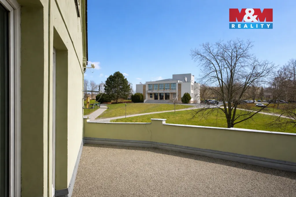 Velkou výhodou je prostorná terasa o rozloze 38 m² s výhledem na kulturní dům a okolí.