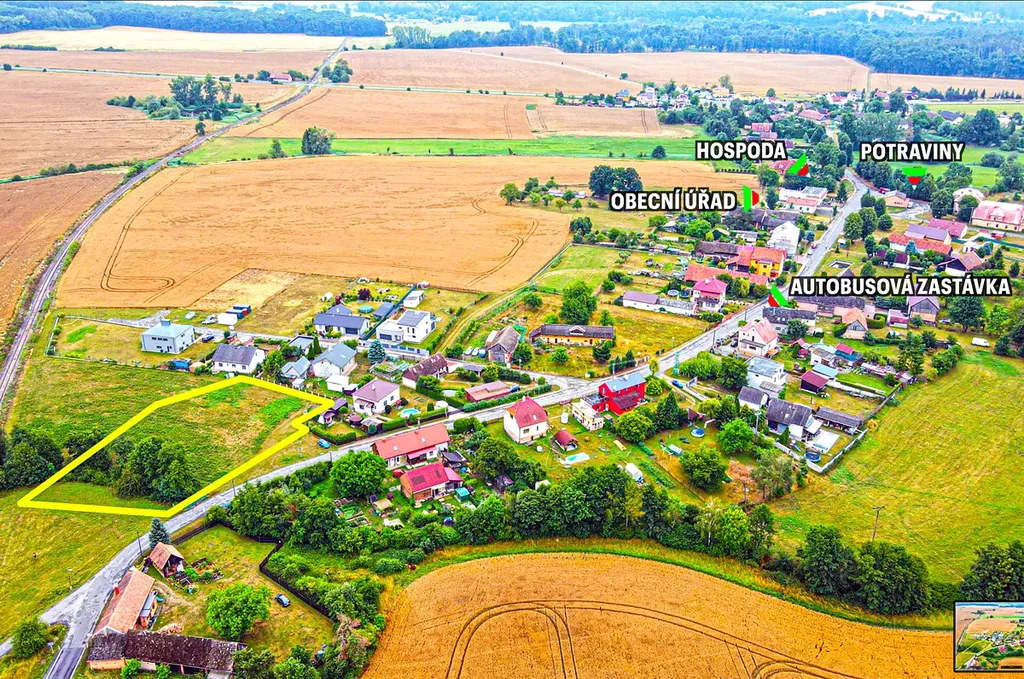 • Možnost připojení na elektřinu a vodovod (přípojky nejsou na hranici pozemku).