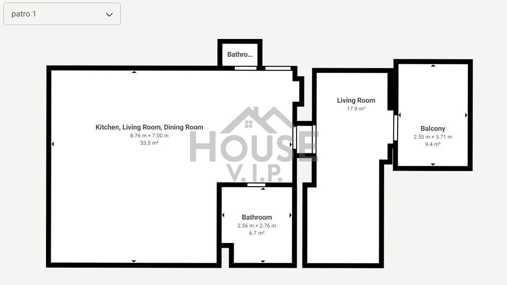 Tento impozantní byt s orientací na V a Z, byl celý navržen. architektem v italském designu. Má vestavěné 2. patro, ve kterém se nachází ložnice a prostorná koupelna s masážní vanou s osvětlením a toaletou. Prvnímu patru dominuje velký obývací pokoj s designovým schodištěm v kombinaci dřevo/kov a s moderním kuchyňským koutem s veškerými zabudovaným elektrospotřebiči. Obytná část je oddělena osvětleným pultem s kamennou deskou (Technistone). Z obývacího pokoje se vstupuje do dalšího pokoje s rozsáhlou skříňovou sestavou; další koženou sedačkou, relaxačním koutem a vstupem na terasu. Ve spodním patře se dále nachází druhá prostorná koupelna se sprchovým koutem, dvěma umyvadly a pračkou. Je zde rovněž samostatné WC s malým rohovým umyvadlem.