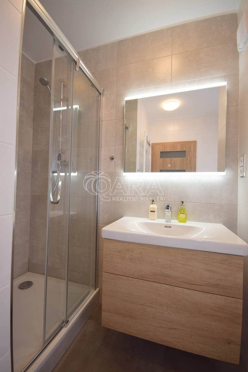 Byt o celkové výměře 53 m² se nachází v bytovém domě s výtahem a prošel kompletní rekonstrukcí. Pronajímá se jako částečně vybavený a nabízí praktické i komfortní bydlení. Kuchyň je vybavena elektrickým sporákem, horkovzdušnou troubou, lednicí a digestoří. Koupelna disponuje sprchovým koutem, toaletou a k dispozici je také pračka. V bytě jsou vinylové podlahy a instalovány žaluzie. Součástí pronájmu je také sklep, který poskytuje další úložný prostor.