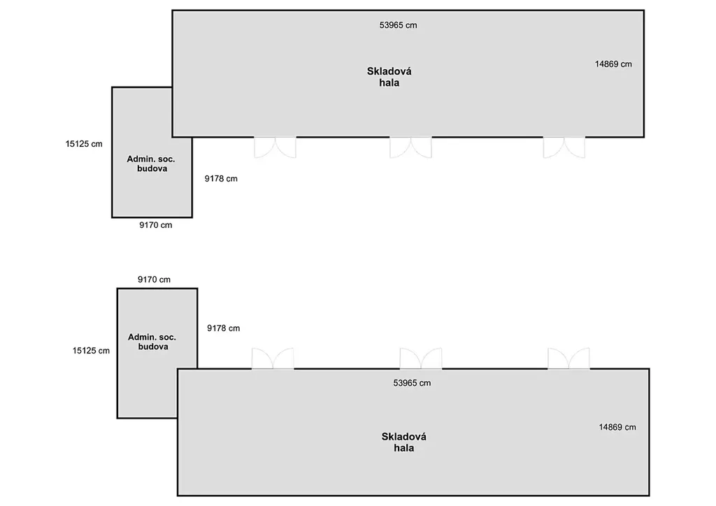 • Skladové části - zastavěná plocha: 2 × 802 m²