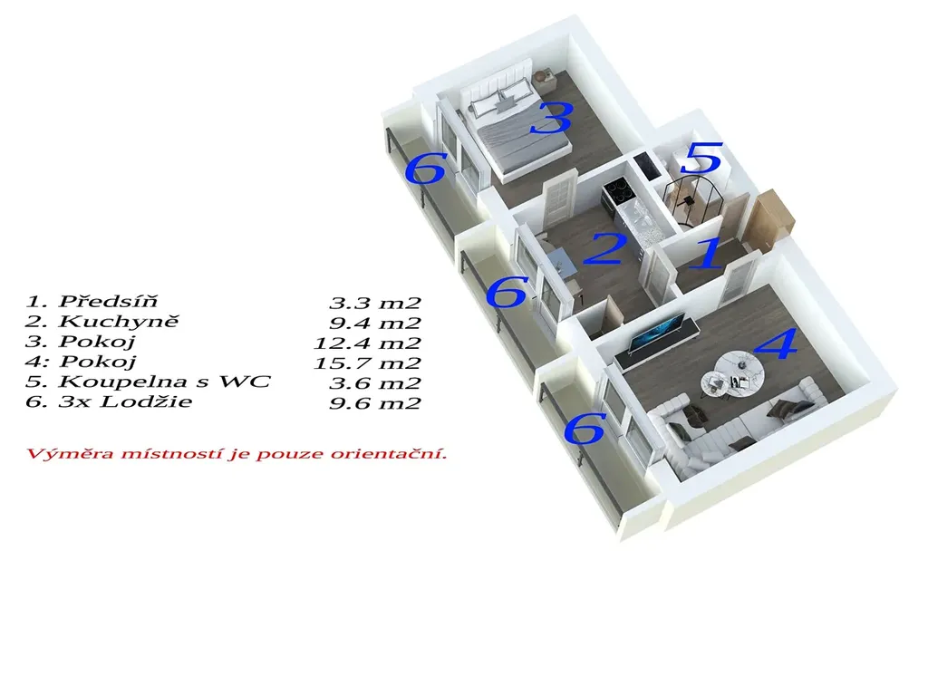Byt ve 4. patře s třemi lodžiemi s rozlohou 56 m2 o dispozicí 2+1 je ideálním místem pro rodinu i jednotlivce, kteří ocení klidné bydlení.