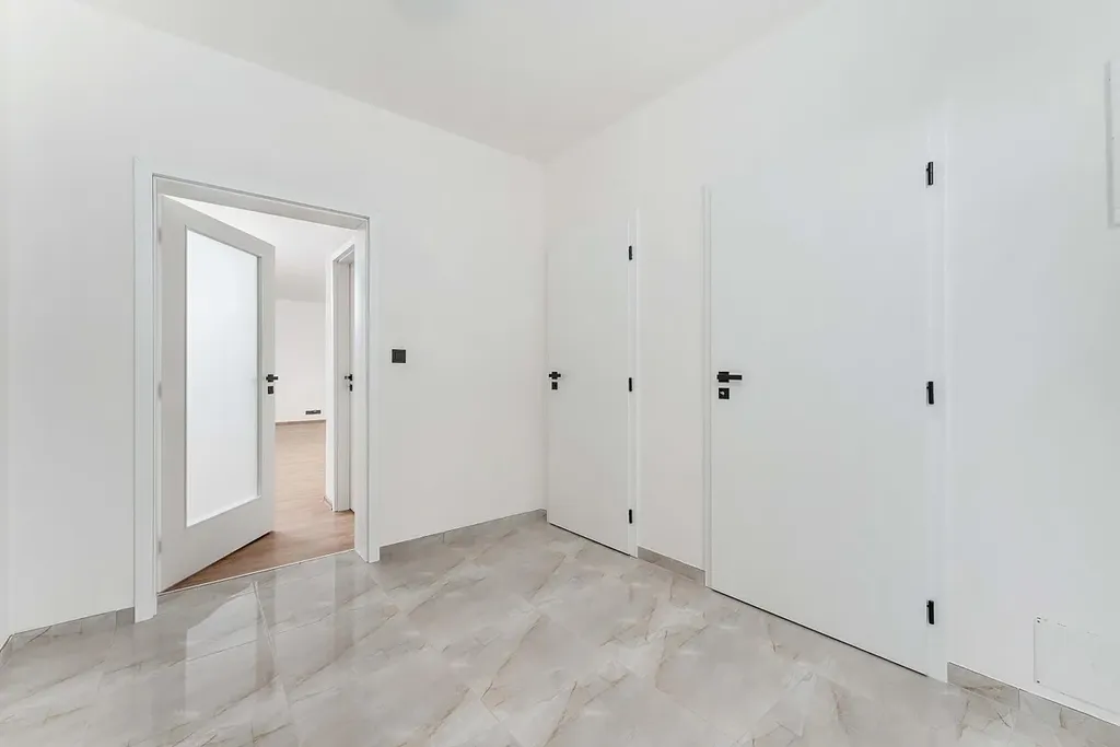 Novostavba dvoupodlažního rodinného domu o dispozici 4+1 nabízí přináší další možnosti využití, terasu (11,2 m) na příjemná posezení a samozřejmě vlastní parkovací stání.