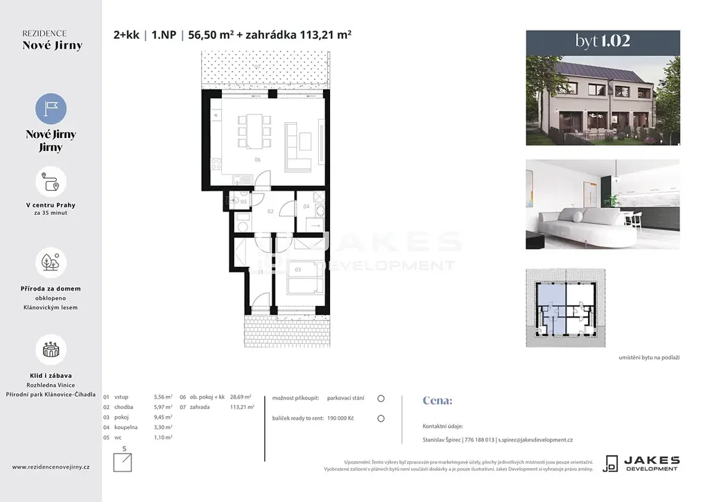 Prodej moderní bytové jednotky 2+kk s vlastní zahradou – Nové Jirny